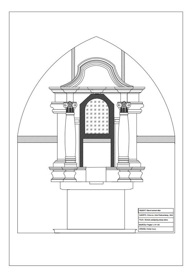 Centralni oltar u crkvi sv. Ante Padovanskog, 18.stoljeće, Svib, CAD crtež